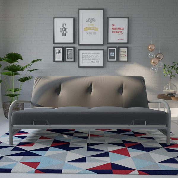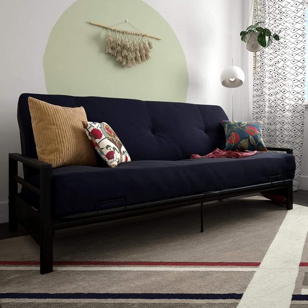 This is another DHP famous and imported furniture product of North America, and people trusted this manufacturer. This futon is constructed with a sturdy metal frame and a solid metal mesh that can comfortably hold your mattress and a total weight limit of up to 600 pounds.
